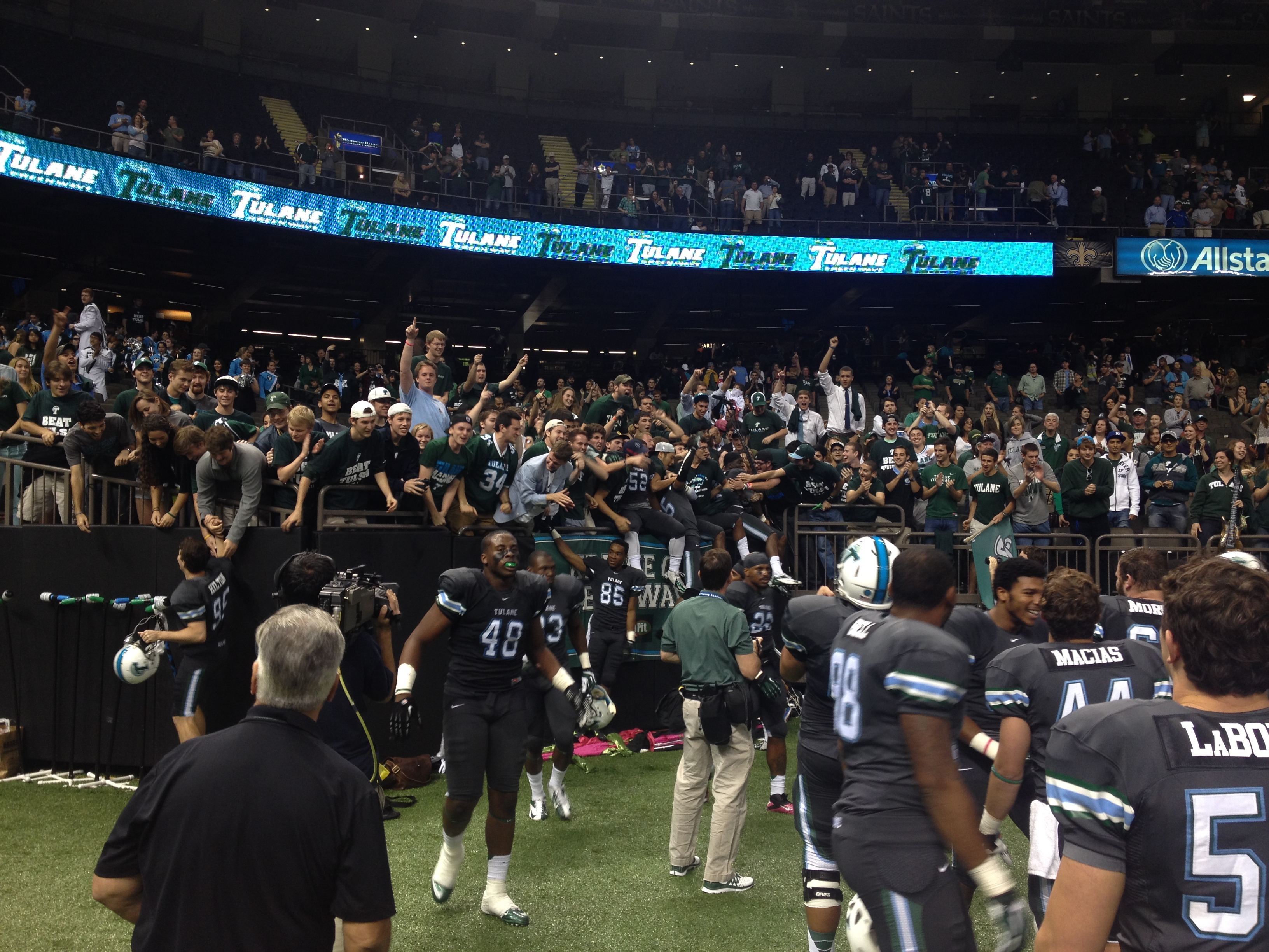 For the older players on this team, this was a moment they had been dreaming about for a long time. Senior RB Orleans Darkwa confessed he didn’t know if he would see this moment during his time at Tulane. Some of the younger players saw the promises made to them during CJ’s recruiting pitch come to fruition faster than even they could have hoped. Guys like Darion Monroe and Lorenzo Doss are a big part of the reason this team has reached this point, and their swagger seems to have permeated throughout the locker room. It was quite apparent how much this game and this season has meant to not only players, but to everyone at the school. Tulane AD Rick Dickson was seen crying after the game, as were many of the parents in the stands. The student section was rocking as players jumped into their waiting arms. Plastic bowls were thrown in the air as chants of “Bowl Game! Bowl Game” broke out around the Dome.